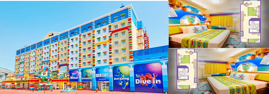 レゴホテルは、全室こども部屋付き。全客室に2段ベッドとトレジャーボックス付きの子ども部屋があるよ。部屋で宝探しを楽しもう!レゴブロックの世界が広がるホテル。冒険と遊び心満載!レゴの魔法に包まれる夢の宿泊体験!ここでは、家族全員が楽しめる多彩な魅力が満載です。まず、ホテルの客室は、パイレーツ、キングダム、アドベンチャー、レゴフレンズ、レゴニンジャゴーという5つのテーマに基づいてデザインされており、それぞれの世界観に浸りながら宿泊できます。住所: 名古屋市港区金城ふ頭2丁目2-1 シーライフ名古屋(ヤフートラベル)